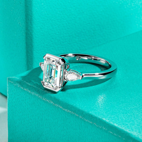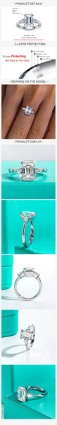 AnuJewel 3.6cttw D Color Emerald Cut Moissanite Pear Cut Engagement Ring 18K Gold Plated for Weddings Women's Gifts