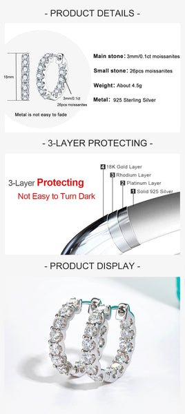 Hoop Earrings: 3mm 2.6cttw 925 Sterling Silver Hoop Earrings