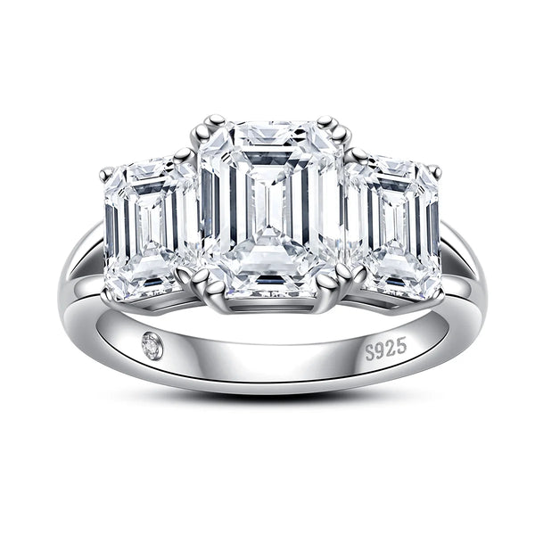 Ring Category2: Emerald Engagement Ring,Moissanite Three Stone Ring